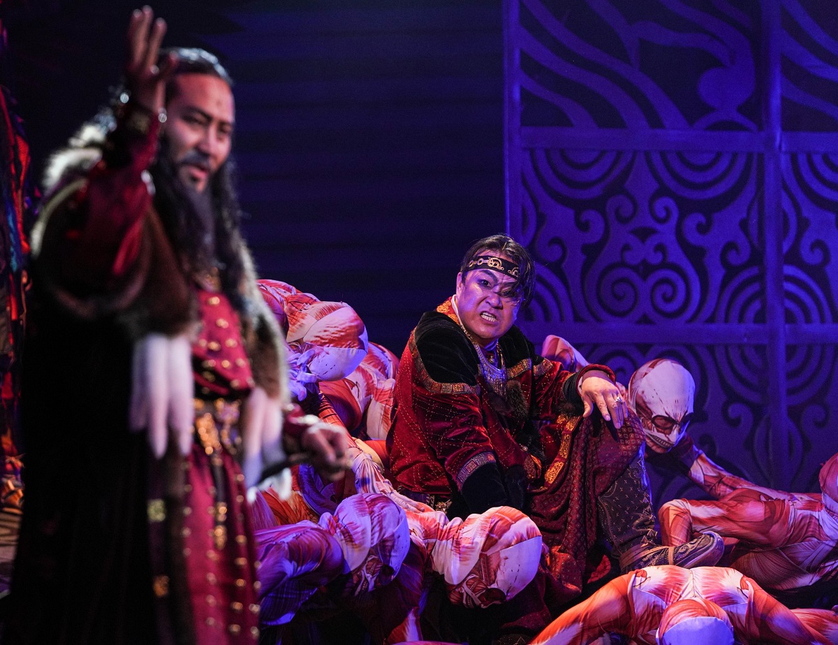 Маш нүсэр, сүрлэг хүчит дуу чимээнд хэсэг “дарамтлуулсан”-ы дараа бөмбөр нүргэлж харанга дэлдэхээр Хүннү гэж бодох ёстой, хүн дээр гишгээд алхахаар нь хаан гэж бодох учиртай юм байна гээд нэг баримжаатай болж дасаж эхэллээ. Иймэрхүү л баримжаатай амьтан би вээр жүжгийн агуулгад анхаарч үлдэхийг чухалчлав.