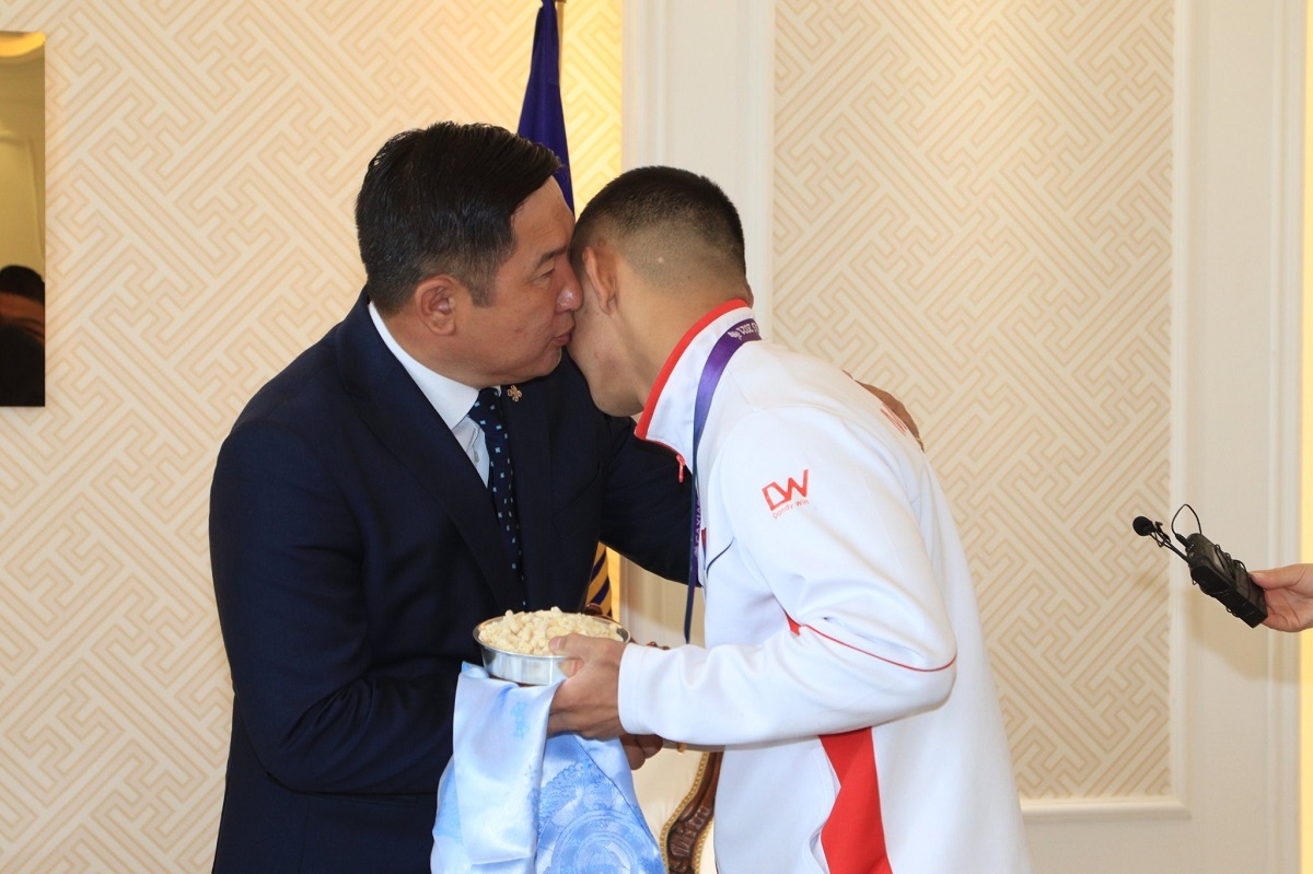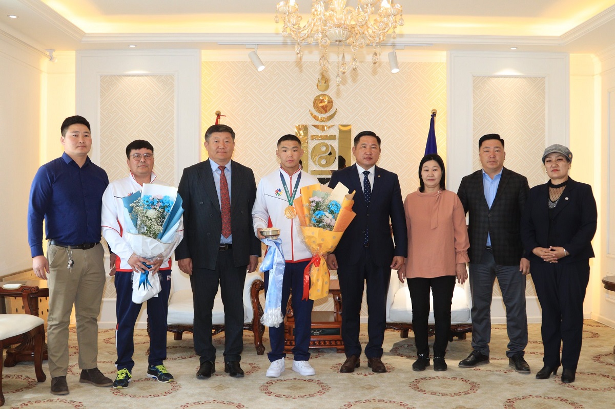 Өвөрхангай аймгийн удирдлагууд өнөөдөр /2022.05.24/ Дифлимпийн чөлөөт бөхийн анхны аварга, алтан медальт Н.Эрхэмбаярыг угтан авч, хүндэтгэл үзүүллээ.