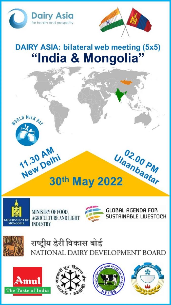 Дэлхийн сүүний өдрийг угтаж Ази тивийн сүүний түншлэлийн Нарийн бичгийн дарга нарын газар, Хүнс, хөдөө аж ахуй, хөнгөн үйлдвэрийн яам, Энэтхэг Улсын Сүүний салбарыг хөгжүүлэх үндэсний зөвлөл, Монголын хүнсчдийн холбоо, Монголын сүүний нэгдсэн холбоо, Энэтхэг улсын сүүний “Амул” үйлдвэр, Гужаратын хоршооны сүүний маркетингийн холбоотой хамтран “Энэтхэг – Монголын сүүний салбарын хоёр талт цахим хэлэлцүүлгийг 2022 оны 5 дугаар сарын 30-ны өдрийн 14.00-16.30 цагт зохион байгуулна.