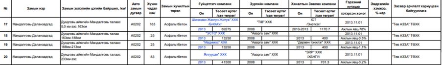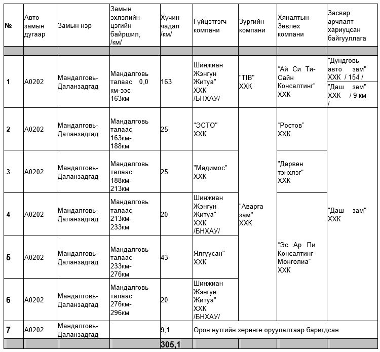 -СҮҮЛИЙН ТАВАН ЖИЛИЙН ХУГАЦААНД ТУС ЗАМЫН ЗАСВАРЫН АЖИЛД ТАВАН ТЭРБУМ, 160 ГАРУЙ САЯ ТӨГРӨГ ЗАРЦУУЛЖЭЭ-