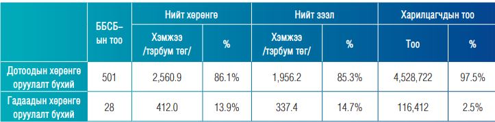 Гадаадын хөрөнгө оруулалттай ББСБ-уудын хувьд салбарын нийт хөрөнгийн 13.9 хувийг эзэмшдэг бөгөөд нийт харилцагчдын 2.5 хувьд үйлчилгээ үзүүлдэг аж. Тодруулбал, Банк бус санхүүгийн салбар дахь гадаад, дотоод хөрөнгө оруулалтын харьцаа дараах байдалтай байна.