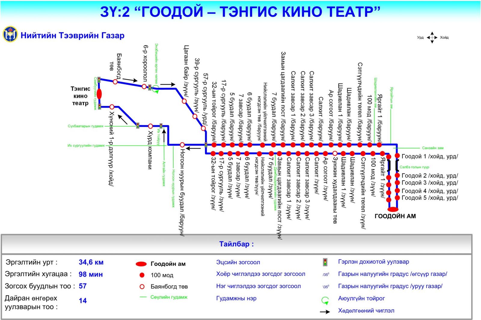 ЗҮ:2 “Гоодой-Тэнгис кино театр” чиглэлийн автобус /1 цаг тутамд/