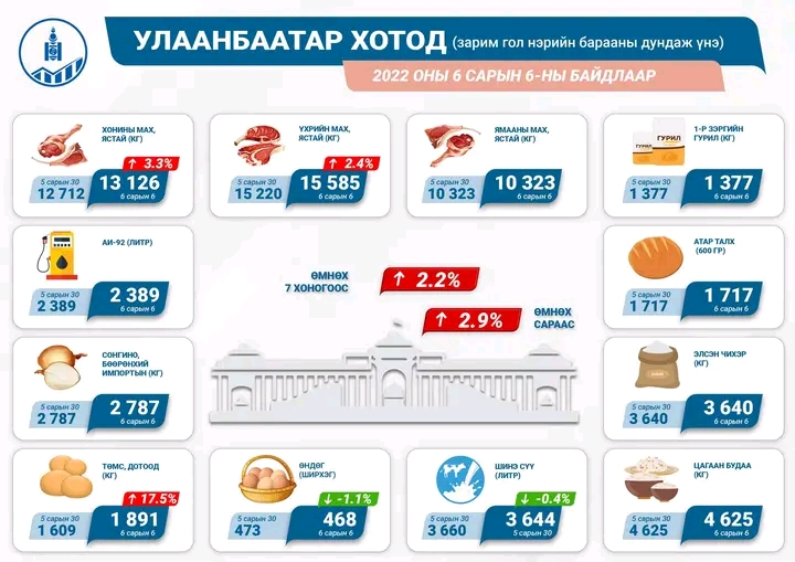 Гол нэрийн барааны үнийн мэдээллийг дараах инфографикаас харна уу.