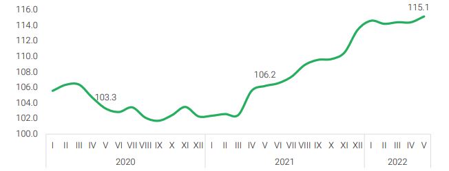 Үндэсний статистикийн хорооноос танилцуулсан тавдугаар сарын статистик мэдээллээр, үнийн өсөлтийн эрчим өмнөх дөрөвдүгээр сарынхаас нэмэгдэж, улсын хэмжээнд хэрэглээний бараа, үйлчилгээний үнэ өмнөх оны мөн үеэс 15.1 хувь, өмнөх оны эцсээс 7.9 хувиар өсөөд байна. Инфляц 15.1 хувь гарсны 56.3 хувь буюу 8.5 нэгж хувь нь импортын барааны үнийн өсөлтөөс шалтгаалсан гэж тайлбарлаж буй.