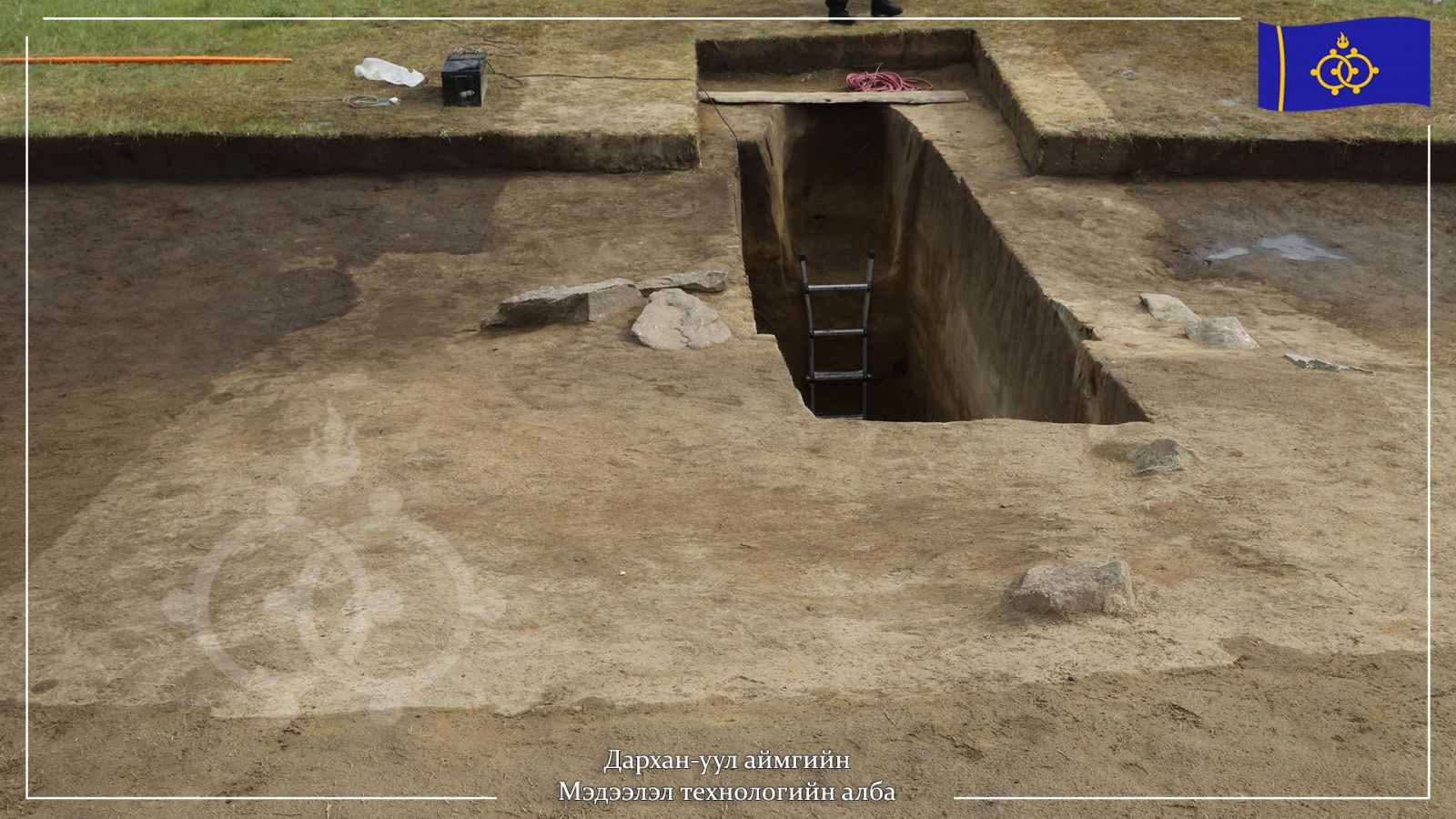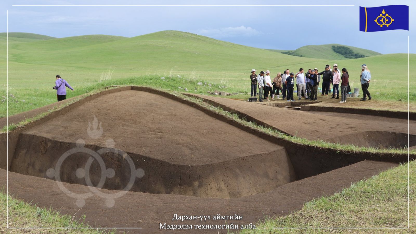 Судалгааг Улаанбаатарын Их Сургуулийн Археологийн тэнхимийн Профессорын 2 дугаар багийн ахлагч, доктор Т.Идэрхангайгаар ахлуулсан судалгааны баг малтан судалж байна.