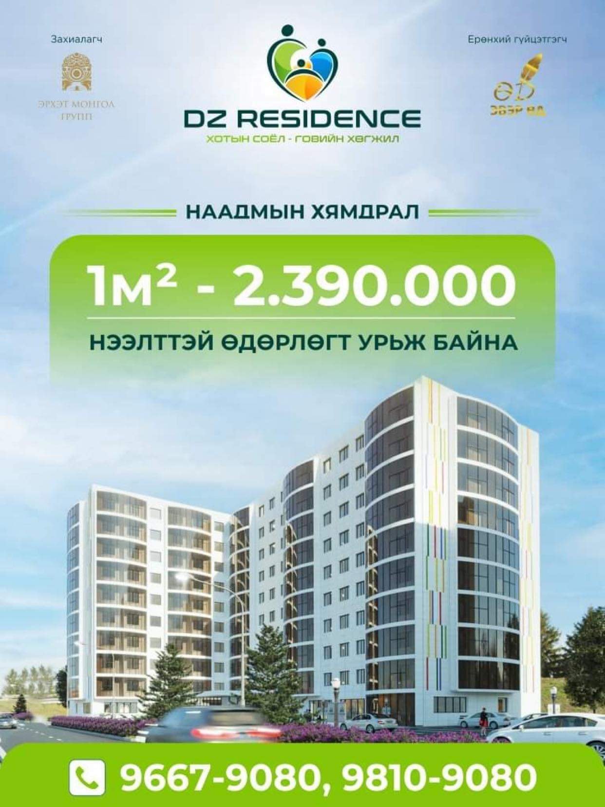 "Эрхэт Монгол" групп, “Эвэр Өд” компанитай хамтран Өмнөговь аймгийн Даланзадгад хотын шинэ суурьшлын бүсэд хэрэгжүүлж буй 650 айлын "DZ Residence" төслийн Нээлттэй өдөрлөг өчигдөр /2022.06.29/ албан ёсоор эхэлсэн. Тэгвэл өнөөдөр Төслийн талбайдаа үргэлжилж буй тул эрхэм та бүхнийг хүрэлцэн ирж, баяр наадмыг угтсан хямдралтай, бэлэгтэй захиалгаа баталгаажуулахыг урьж байна.