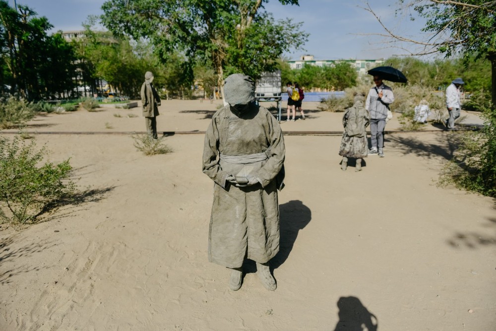 Эдгээр санааг зангидсан томоохон бүтээл дорнын говьд дэлгэгдсэн юм. Эхнийх нь Д.Отгонбаярын гурав дахь бие даасан үзэсгэлэн "Завгүй хүмүүс". Хуучин хувцас, цаас, өндөгний сав, баглаа ашиглан бүтээсэн хүмүүсийн нүүрэнд толь тогтоож, гарт нь утас бариулжээ. Үзэгчид тэдний нүүр лүү харахдаа өөрийгөө олж харна. Тийм ээ, бид бол тэд, тэд бол бид. Завгүй их урсгал дунд хүмүүс хэн болж хувирдаг вэ гэсэн асуултыг тэр говийн өргөн уудам зайд маш томоор тавилаа. Харин нөгөө талд нь бид төрөлх мөн чанараасаа холдож буй гэсэн санааг үргэлжлүүлэн Ж.Анунаран “Дархлахтун” бүтээлдээ тусгажээ.