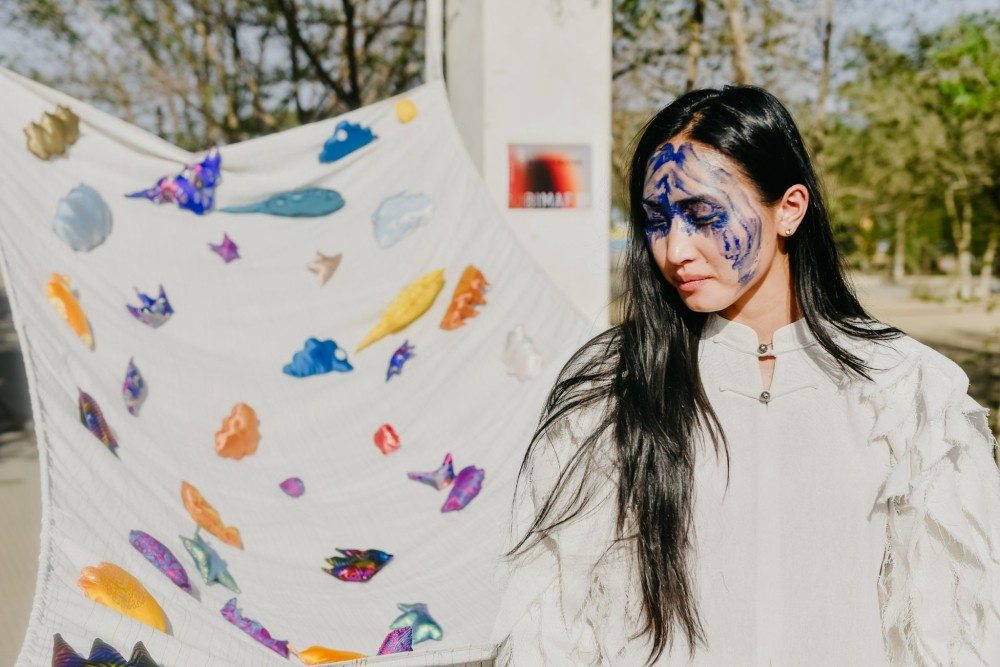 Даавуун дээр таван махбодод ордог шороо, ус асгаж, түүн дээрээ цэцэг “ургууллаа”, нүүрэндээ цэнхэр өнгийн будаг түрхсэн уран бүтээлч өөрөө тэнгэр болж шороо, ус, ургамалтай нэгэн хэлхээнд орших ажээ. Байгаль бол эргэх холбоонд тулгуурласан тогтолцоо. Нэг нь дутвал нөгөө нь үхэж, үгүйрэх хуультай. Ж.Анунарангийн бүтээл таван махбод, хүйн холбооны тухай эргэцүүллийг бидэнд биет үзүүлэхүйн урлагаар хүртээлээ.