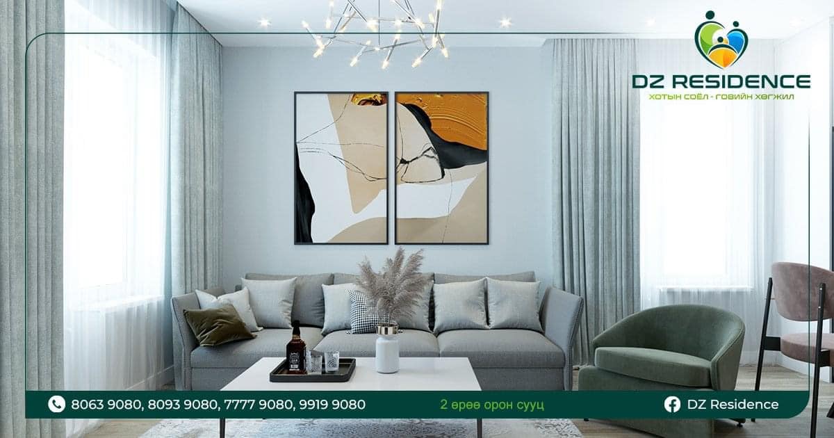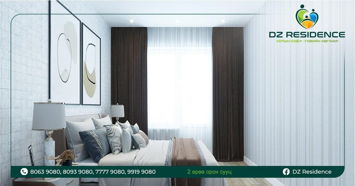 1-4 өрөө бүхий талбайн өргөн сонголттой, хамгийн сүүлийн үеийн интерьер, экстерьер дизайнтай, өргөн цэлгэр цонхтой, чулуун эмульс болон гоёмсог шилэн фасадтай, орчин үеийн чанартай тоноглолтой гээд “DZ Residence" төслийн давуу тал олон.