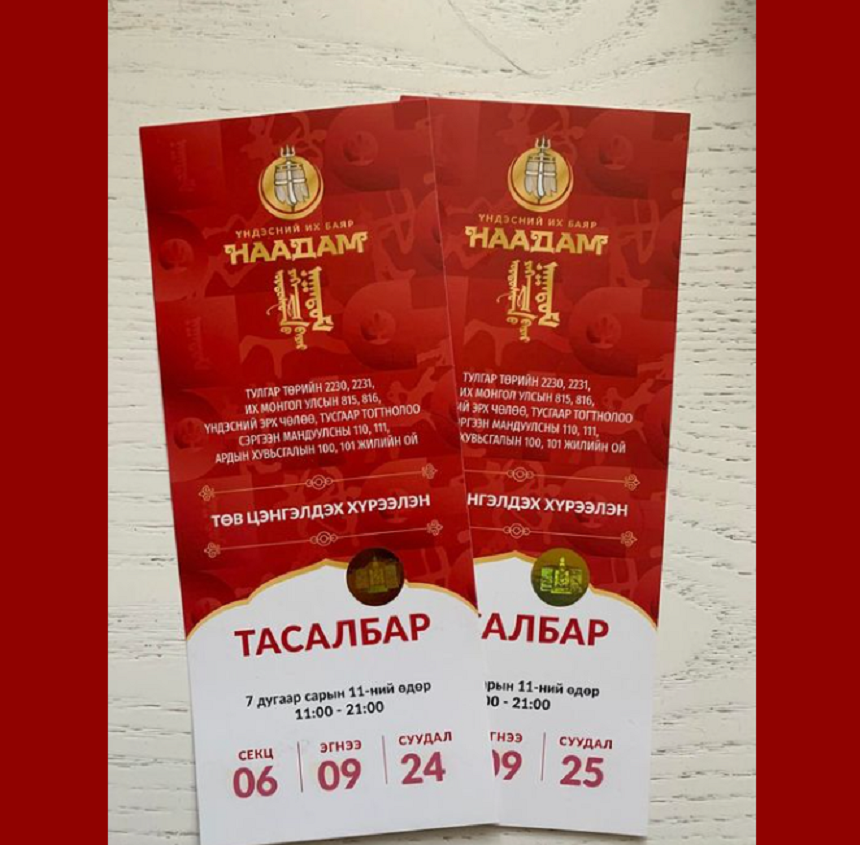 Нар хур тэгширсэн дэлгэр зуны дэнж хотойлгосон наадам хүн бүрийн сэтгэлд тодхон үлддэг. Өнгөрсөн хоёр жилийн хугацаанд Үндэсний их баяр наадмаа өргөн дэлгэр тэмдэглэж чадаагүй монгол түмний хувьд энэ жилийн наадам хүсэн хүлээсэн баяр болох нь дамжиггүй. Гэвч сайныг дагаж саар зүйл отож байдагчлан баяр наадмын тасалбарыг дамлан наймаалах үзэгдэл жил бүр байсаар ирэв. Угтаа бол энэ жилээс баяр наадмыг зохион байгуулах комиссоос наадмын тасалбарыг дамлан наймаалахаас сэргийлэн цахимаар борлуулж эхэлсэн. Гэвч цахимаар ч, тасалбар борлуулах цэгээр ч зарсан энэ үзэгдэл арилахгүй хэвээр байна. Тиймээс бид баяр наадмын тасалбарыг дамлан наймаалж буй үзэгдэл болон наадамтай холбоотой бусад асуудлыг сурвалжиллаа.