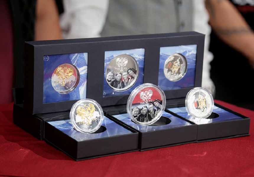 Энэ хүрээнд урлаг, спортын алдартнууд цувралын үргэлжлэл болгон “THE HU” гурван төрлийн дурсгалын мөнгөн зоос эрхлэн гаргаад байна. Тус дурсгалын зооснуудыг сүүлийн үеийн smartminting технологиор урлаж, хэсэгчлэн алтаар бүрснээрээ онцлогтой. Хамтлагийн гишүүдийн зураг бүхий дурсгалын зоос нь 3 унцийн жинтэй 65 мм диаметртэй, Хүннү гүрэн болон хамтлагийн логотой дурсгалын зоос нь 2 унцийн жинтэй 50 мм диаметртэй болно.
