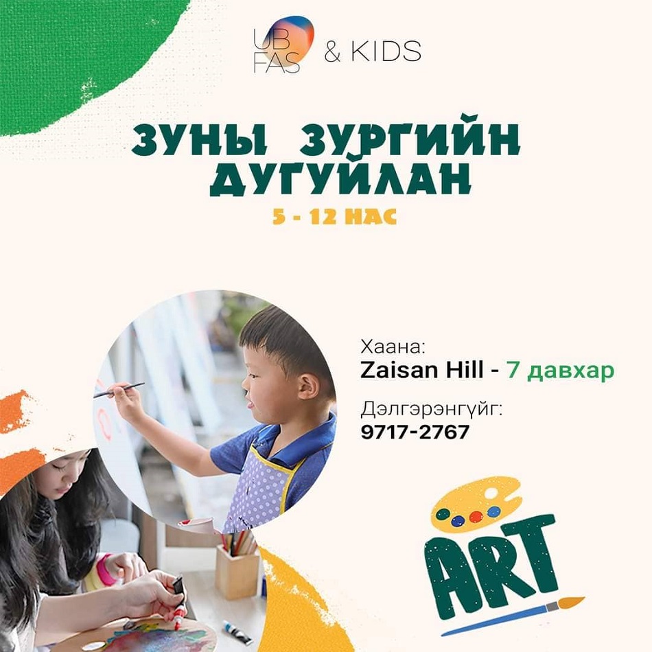 "Улаанбаатар" дүрслэх урлагийн студи нь зураг зурах дуртай хүүхэд багачууд та бүхнийг зургийн дугуйланд урьж байна.