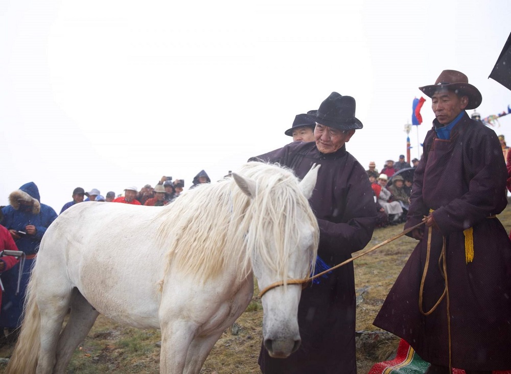 Үүний дараа Монгол Улсын Ерөнхийлөгчийн Соёл, шашны бодлогын зөвлөх Д.Бум-Очир Хан Хөхий хайрхан уулын тэнгэрт хандсан айлтгалыг дуудан сонсгож, торгон дээр бичсэн эх хувийг Увс аймгийн музейд хадгалуулахаар өгөв.