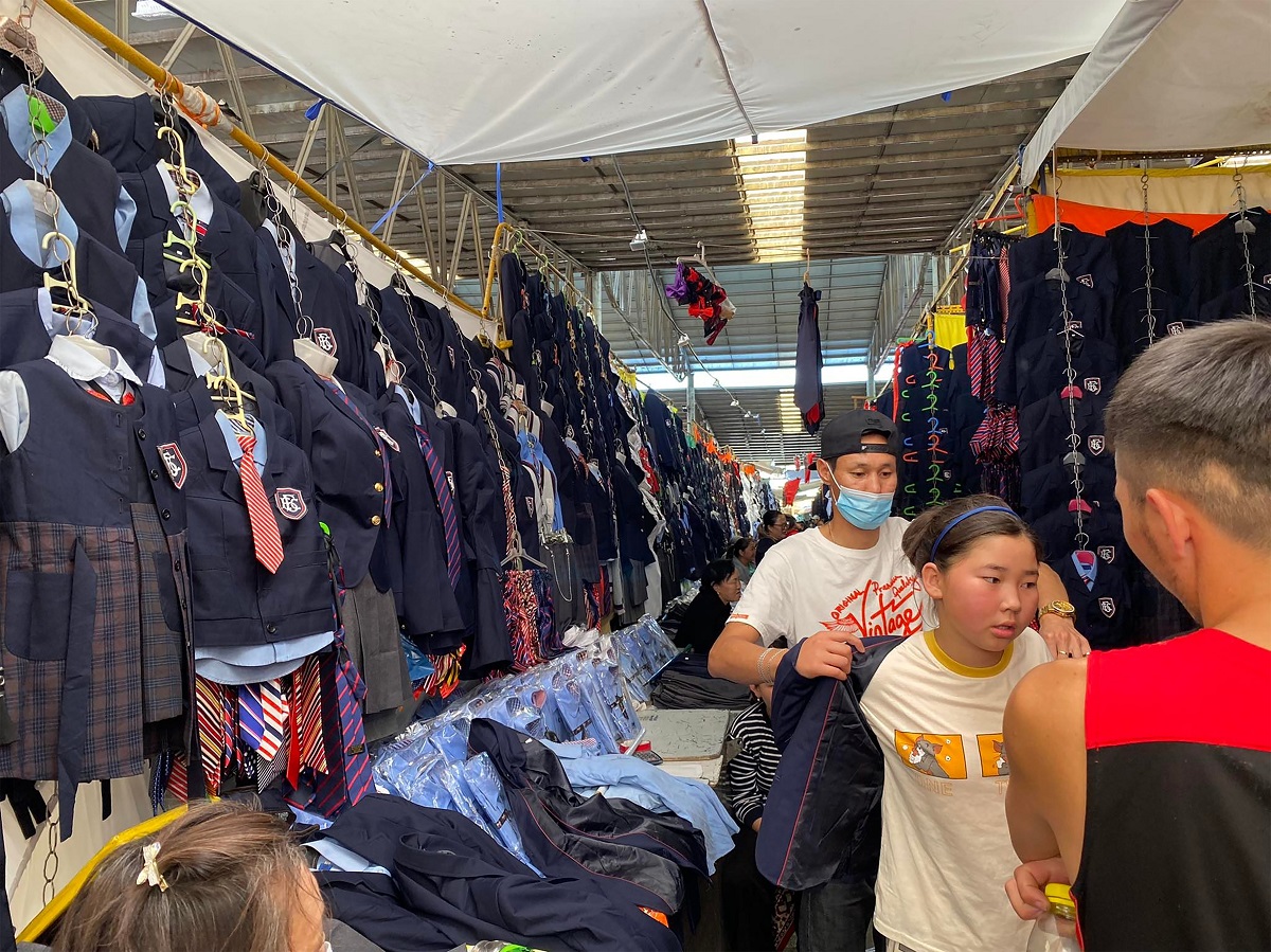 Худалдагч нар “Хэддүгээр ангийн хүүхдэд дүрэмт хувцас хайж байна. Эгч нь нэг ширхэг хувцас бүрээс нь 5000 төгрөг хасаад өгнө шүү” гээд найрсагхан байлаа. Дахин сурагчийн дүрэмт хувцас ирэх эсэхийг худалдагчаас тодруулахад, “Сурагчийн дүрэмт хувцас зарагдаад дөнгөж эхэлж байгаа болохоор одоогоор размерууд байна. Хил нээгдэхгүй удах юм бол размер нь дуусаж, сонголтгүй болно” гэж байлаа.