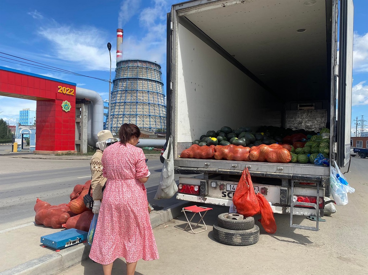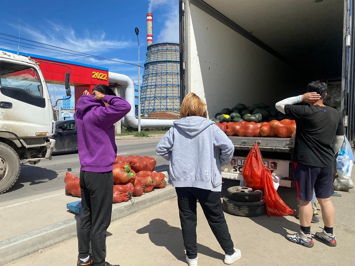 Ховдын тарвас худалдаалж буй тариаланчидтай очиж уулзахаар Дулааны цахилгаан станц-IV зорьлоо. Бид үд дундын үед зорьсон газартаа ирэхэд урт тэвштэй хоёр том ачааны машин дээр тарвас зарж байгаа нь харагдав. Иргэд ганц нэгээр ирж тарвас амтлан, худалдан авч байлаа. Иргэд хувцсаа тарвасны шүүс болгохгүйг хичээж хагас бөгтийж амтархан идэж байв.