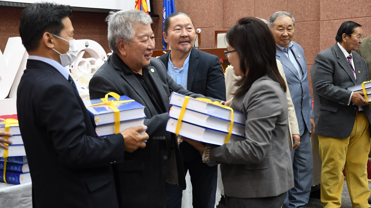 “Амьдралыг тэтгэгч тогтолцооны нэвтэрхий толь” бүтээлийн нээлтийн үеэр тус номонд ажилласан орчуулагч, редактор эрдэмтэн судлаачдад номыг дээжийг гардуулж өглөө.