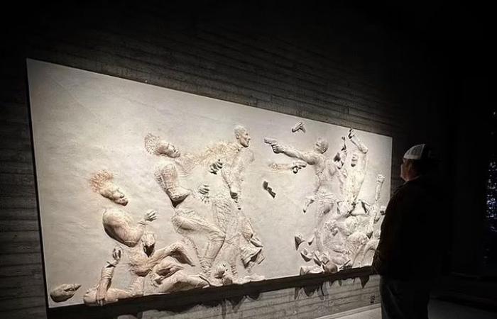 Үзэсгэлэнд түүний есөн бүтээл тавигдсан байна. Тухайлбал, хайрцгаас гарах гэж тэмүүлж буй хүний хүрэл баримал, “Өөр рүүгээ онилохдоо өөрийг харсан ч хэтэрхий оройтсон байв” нэртэй ханын баримал, модон байшин, “Хартай хүмүүст зориулсан лааны суурь” зэрэг бүтээлүүдээ танилцуулжээ.