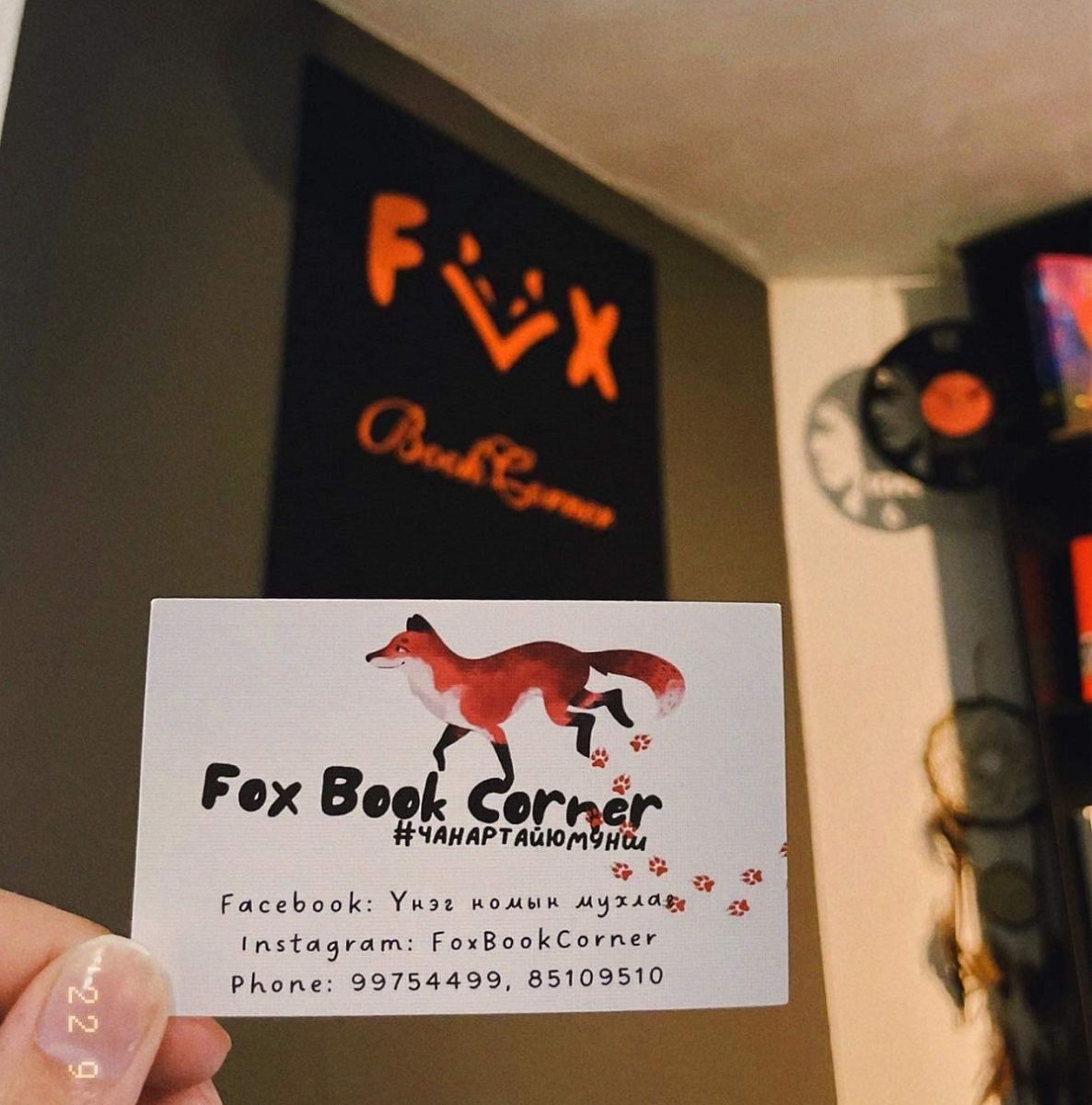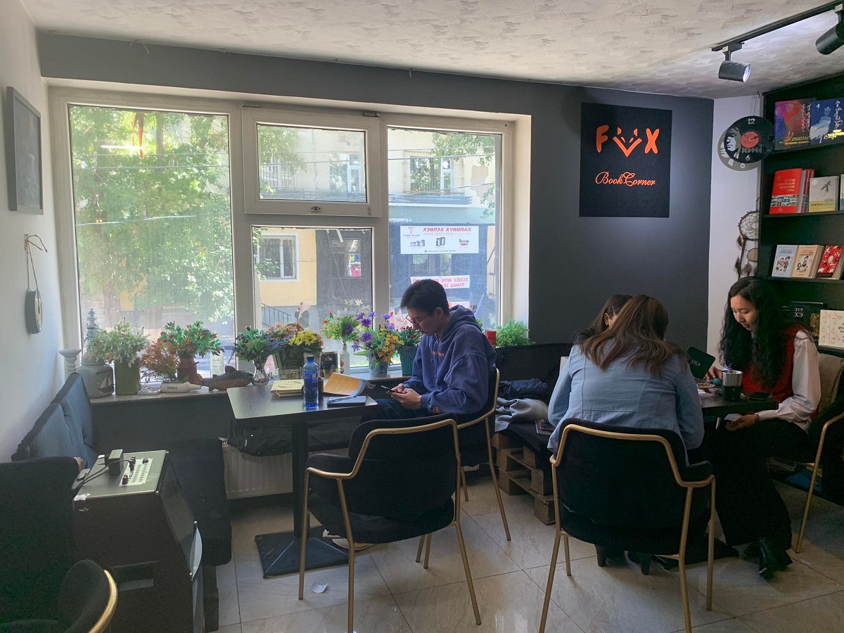 Тэнд хүмүүс үнэхээр аялж буй бололтой... Нэг хоёр нь шатар нүүж, зарим нь кофе уун, хоорондоо яриа өрнүүлнэ, нөгөө хэсэг нь ном уншина. Ийм амьдлаг орчинд “Fox book corner” буюу “Үнэг” номын мухлаг номд хайртай бүхнийг тосон угтаж байна.