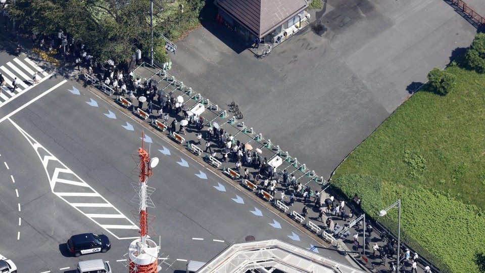 Үүнтэй зэрэгцэн, Шинзо Абэтэй салах ёс гүйцэтгэн, цэцэг өргөх хүсэлтэй хүмүүс урт дараалал үүсгэжээ. Тэд “Nippon Budokan” ордны дэргэдэх цэцэрлэгт хүрээлэнд зассан тусгай тавцан дээр цэцэг өргөж байна.