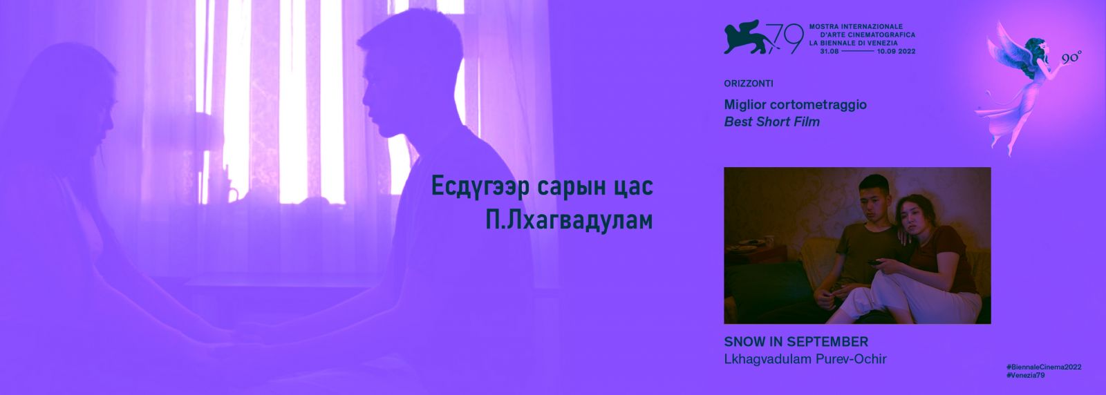 Мөн Кино урлагийн зөвлөлөөс дэмжин ажилласан Франц улсын “Аврора Фильм” компани, Монгол улсын “Гуру Медиа” компанийн продюсер Ц.Ариунаа, найруулагч П.Лхагвадуламын бүтээл “Есдүгээр сарын цас” /Snow in September/ богино хэмжээний кино нь 8 дугаар сарын 31-нээс 9 дүгээр сарын 10-ны хооронд зохион байгуулагдсан 79 дэх удаагийн “Венецийн Олон улсын кино наадам”-аас “Шилдэг богино хэмжээний кино” шагналыг хүртэв.