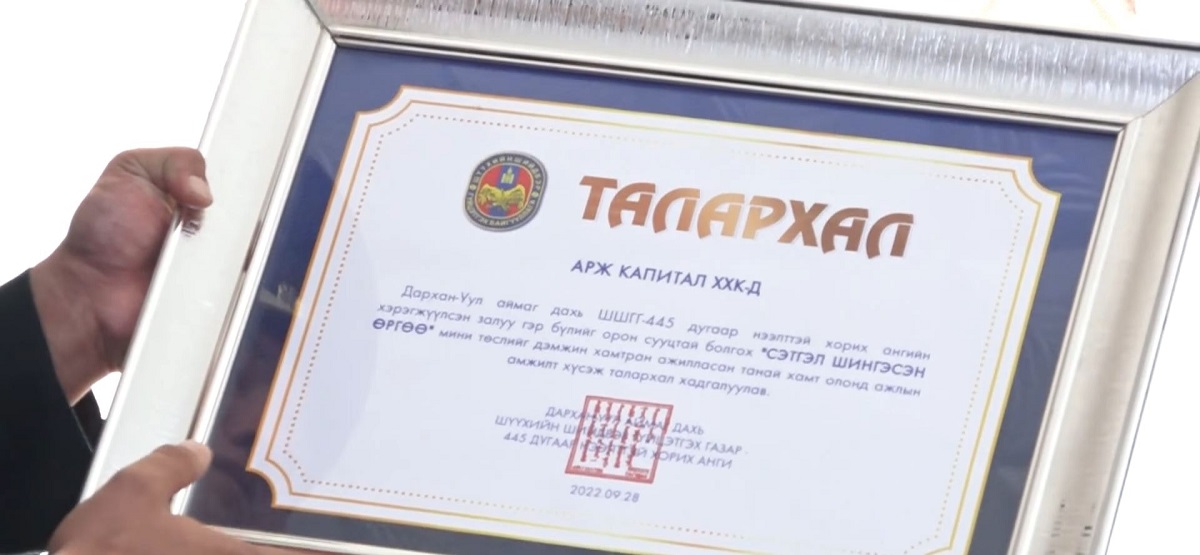Хамгаалалтын ажилтан, дэд ахлагч Э.Чимид байрны үнийн дүнгийн 50 хувийг өөрөө бүрдүүлсэн бол тус анги нь Шүүхийн шийдвэр гүйцэтгэх байгууллагын 2021 оны тэргүүний хорих анги, шүүхийн шийдвэр гүйцэтгэх газар, хэлтсийг шалгаруулах төрөлд 2 дугаар байр эзэлсэн шагналын мөнгө болон алба хаагчдын сэтгэлийн хандиваар ийнхүү 2 өрөө байр олголоо.