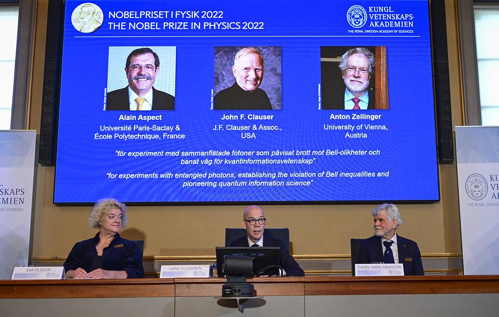 2022 оны физикийн салбарын Нобелийн шагналыг Ален Аспе /Франц/, Жон Клаузер /АНУ/, Энтон Цайлингер нар квант механикийн судалгааны ажлаараа хүртлээ.