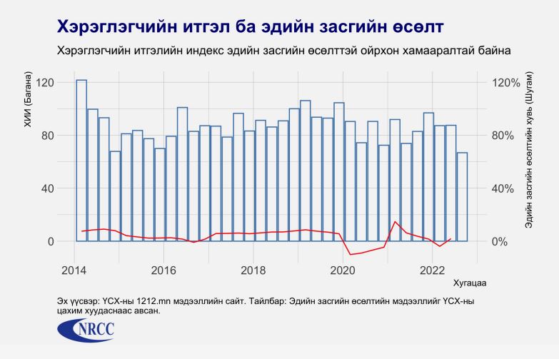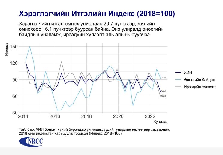 “NRCC” болон Монгол-Японы хүний нөөцийн хөгжлийн төвөөс Хэрэглэгчийн итгэлийн улирал тутмын судалгааг өнгөрсөн есдүгээр сард зохион байгуулжээ. Судалгаанд Монгол Улсын 21 аймаг, нийслэл Улаанбаатар хотын 1000 гаруй иргэд хамрагдаж, эдийн засгийн өнөөгийн төлөв, ойрын ирээдүйн хандлагын талаар мэдээлэл өгсөн байна.