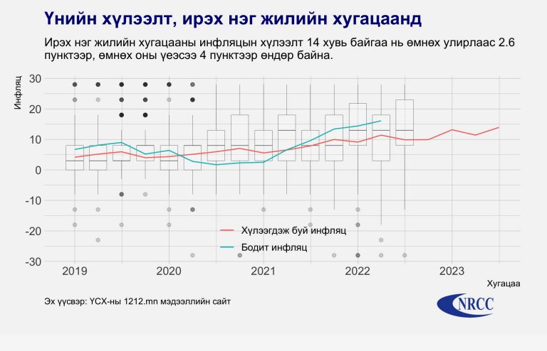 Ирэх 6 сарын хугацаанд үнийн түвшин өснө гэсэн хүлээлттэй иргэдийн хувь 76, ирэх нэг жилийн хугацаанд үнийн түвшин өснө гэсэн хүлээлттэй иргэдийн хувь 73 байна. Хэрэглэгчид инфляцын түвшинг ирэх 6 сар болон нэг жилийн хугацаанд харгалзан 11.6 болон 14.0 хувь байна гэсэн хүлээлттэй байна. Хүлээгдэж буй инфляцын ойрын 6 сар болон жилийн дараах түвшингүүд өмнөх улиралтай харьцуулахад өссөн байна.