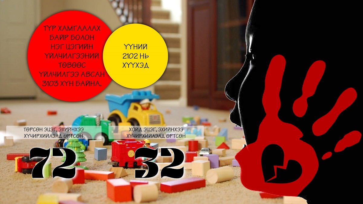 Өөрөөр хэлбэл он гарсаар эхний есөн сарын байдлаар 65 хүүхэд хүчирхийллийн хохирогч болсон гэдгийг цагдаагийн байгууллагаас бидэнд мэдээлсэн. Улсын хэмжээнд түр хамгаалах байр 21, Нэг цэгийн үйлчилгээний 14 төвөөр 3103 хүн үйлчлүүлсэн бөгөөд үүний 2102 нь хүүхэд байжээ. Ийн холбогдох байгууллагуудаас гаргасан дүн мэдээллээс харахад жил ирэх тусам хүүхдийн эсрэг хүчирхийлэл өсч байгаа нь сэтгэл эмзэглүүлсэн асуудал болоод байна.