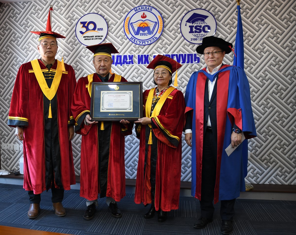 “Хүндэт профессор” цол олгох ёслолын ажиллагааны үеэр Мандах их сургулуийн захирал Г.Нанжид хэлэхдээ “Шинжлэх ухаан, боловсролын салбарын хамтын ажиллагааг өргөжүүлэх, мэдлэгийг солилцох, дамжуулах, түгээх, судалгаа хөгжүүлэлтийн ажлын үр дүнг эдийн засгийн эргэлтэд оруулах үйл ажиллагааг дэмжих, Шинжлэх ухаан боловсролын салбарт оруулсан хувь нэмрийг үнэлэн энэхүү хүндтэй цолыг олгож байна” хэмээн онцлов.