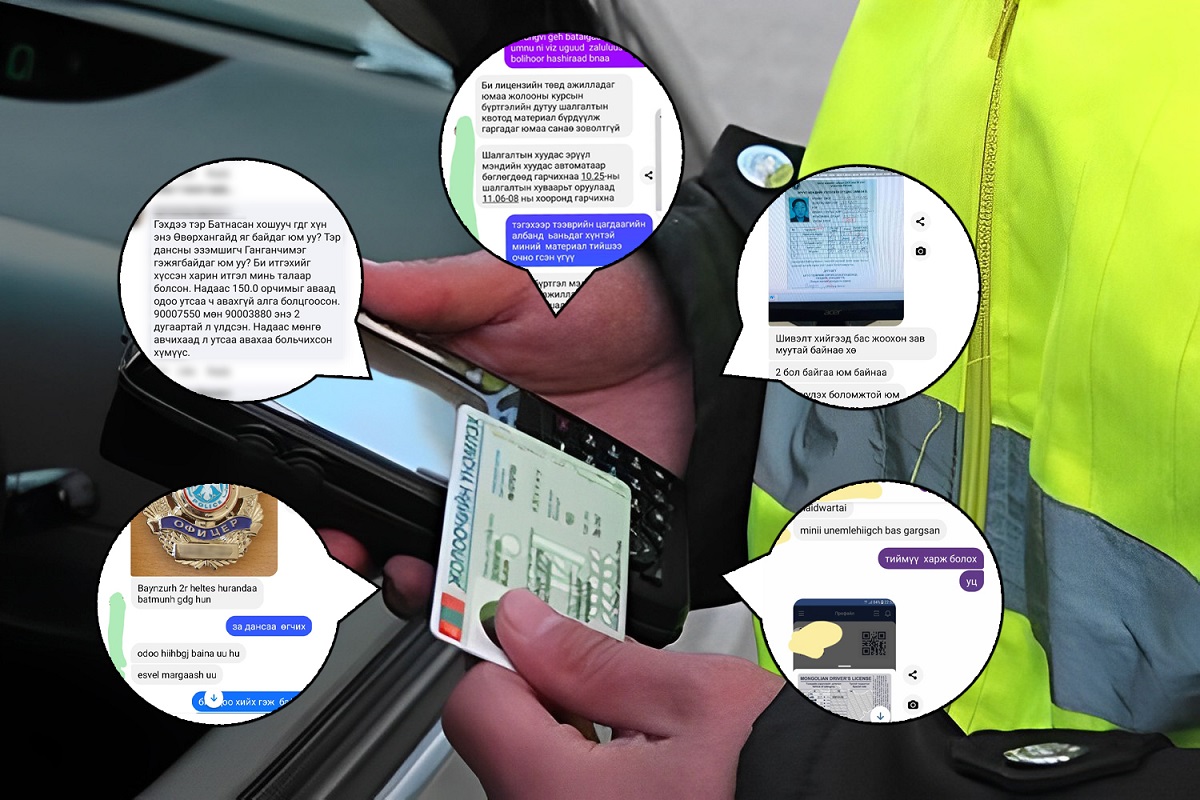 Цагдаа мэргэжилтэй Э олон хүнд "E-mongolia" апплэйкишнд бүртгэлтэй жолооны үнэмлэх гаргаж өгсөн. Миний хувьд жолоонд сууж байгаагүй. Ойр зуурдаа машин бариад сурчихсан. Э-д 800 мянган төгрөг өгч жолооны үнэмлэх 30 хоногт гаргуулсан” гэв. Түүний хэлсэн дугаар руу залгаж жолооны үнэмлэх гаргуулах санал тавихад болно хэмээв. Тухайн хүнийг цагдаа эсэхийг лавлахад аль хэлтэст ажилладагаа хүртэл хэлсэн юм. Тэрбээр “805 дугаар анги дээр ирээд залга” гэсэн бөгөөд түүний Фэйсбүүк хаяг руу чат бичихэд “Цусны бүлэг, иргэний үнэмлэх, оршин суугаа хаягийн тодорхойлолт, нэг хувь цээж зураг, зэрэг материалыг явуулна уу” гэлээ. Ийн түүний хэлснээр холбогдох баримтуудыг илгээхэд “Шат шатны хүмүүст мөнгө өгөх учир Хаан банкны........ тоот дансанд төлбөрөө бүтэн хийгээрэй” гэсэн юм. Цагдаа жолооны үнэмлэх хууль бусаар гаргадаг үйлдэл үүгээр дуусахгүй.