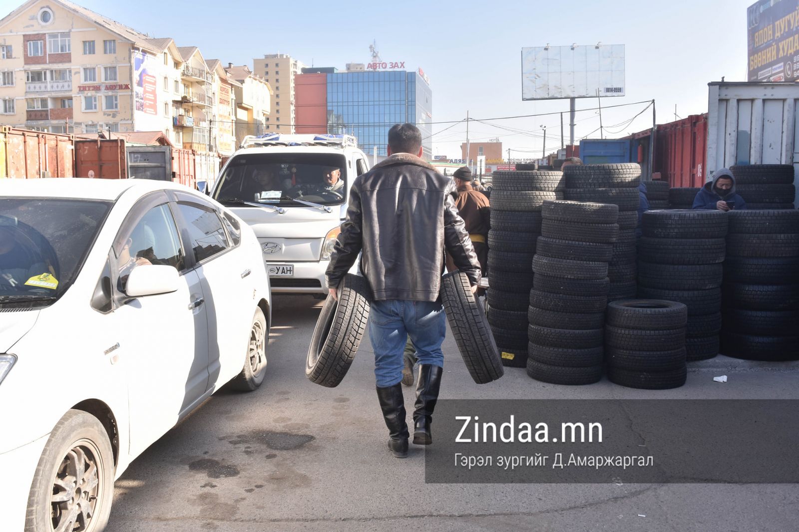 Өчигдөр орсон цас “Өгөөмөр” захыг нэлээд хөл хөдөлгөөнд оруулжээ. Хаа сайгүй дугуй барьсан, дугуйны үнэ асуусан хүмүүс хөлхөлдөнө. Тэд ихэвчлэн эхлээд шинэ дугуйны үнийг асуух боловч, төд удалгүй хуучин бөгөөд хээний элэгдэл багатай дугуйг худалдан аваад гарч одно.