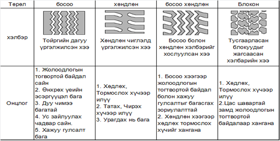 Дугуйн хээ нь үндсэн дөрвөн төрөл байдаг. Эдгээрийг хооронд нь хоршуулах замаар шинэ хээний төрлийг зохион бүтээдэг байна.