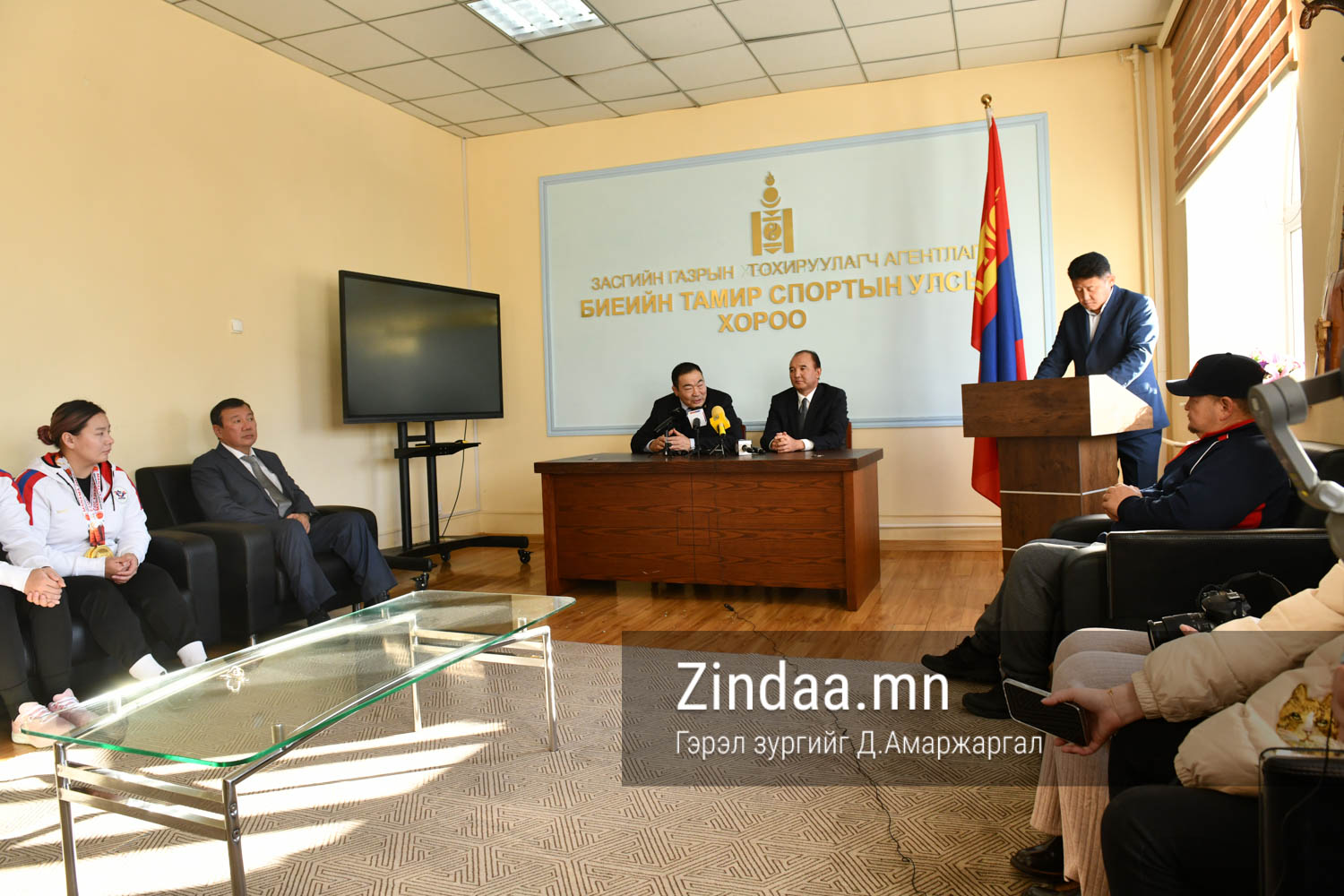 Олимп, нийтийн биеийн тамир, спортын Үндэсний хорооны дарга Б.Бат-Эрдэнэ, Биеийн тамир, спортын улсын хорооны дарга Д.Жаргалсайхан нар Бахрейн улсын Манама хотод болсон хүндийн өргөлтийн Ази тивийн аварга шалгаруулах тэмцээнд өндөр амжилт үзүүлсэн баг тамирчдыг хүлээн авч уулзаж, шагнал гардуулав. Биеийн тамир, спортын тэргүүний ажилтан цол тэмдгээр Ц.Хосбаяр, О.Дархижав нарыг шагналаа.