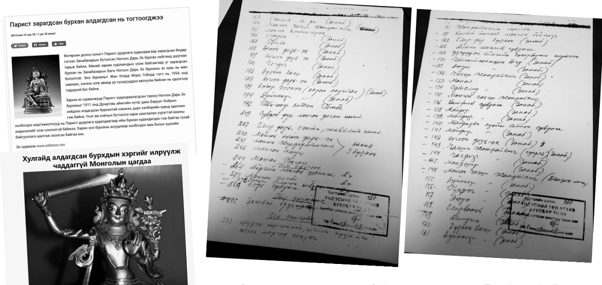 Дээрх тооллогын бүртгэл, бичгээс үзэхэд 1980-аад оны дунд үеэс Гандантэгчэнлин хийд болон музейд байгаа соёлын бүх өвийг паспортжуулж, зургийг нь авч хадгалсан гэж ойлгогдож байна. Гэтэл Франц, Швейцарь, Бээжингийн дуудлага худалдаагаар зарагдаж байгаа Занабазар хийцийн бурхны зураг, урт өндрийн хэмжээ, жин гээд бүх мэдээлэл цацагдаж байхад Монгол Улс яагаад бүртгэл алга, эх сурвалж бүү мэд гээд сууж байдаг юм бол гэж бодогдоно.