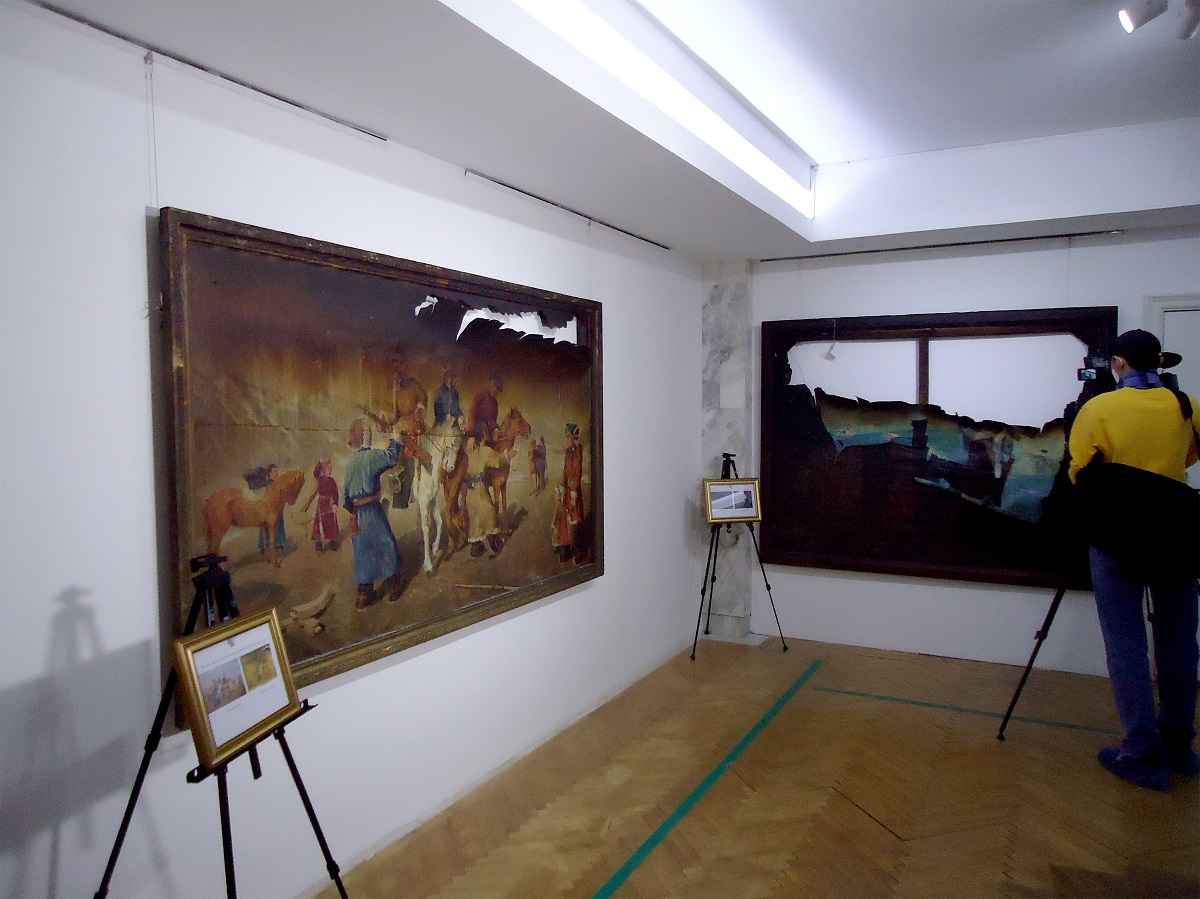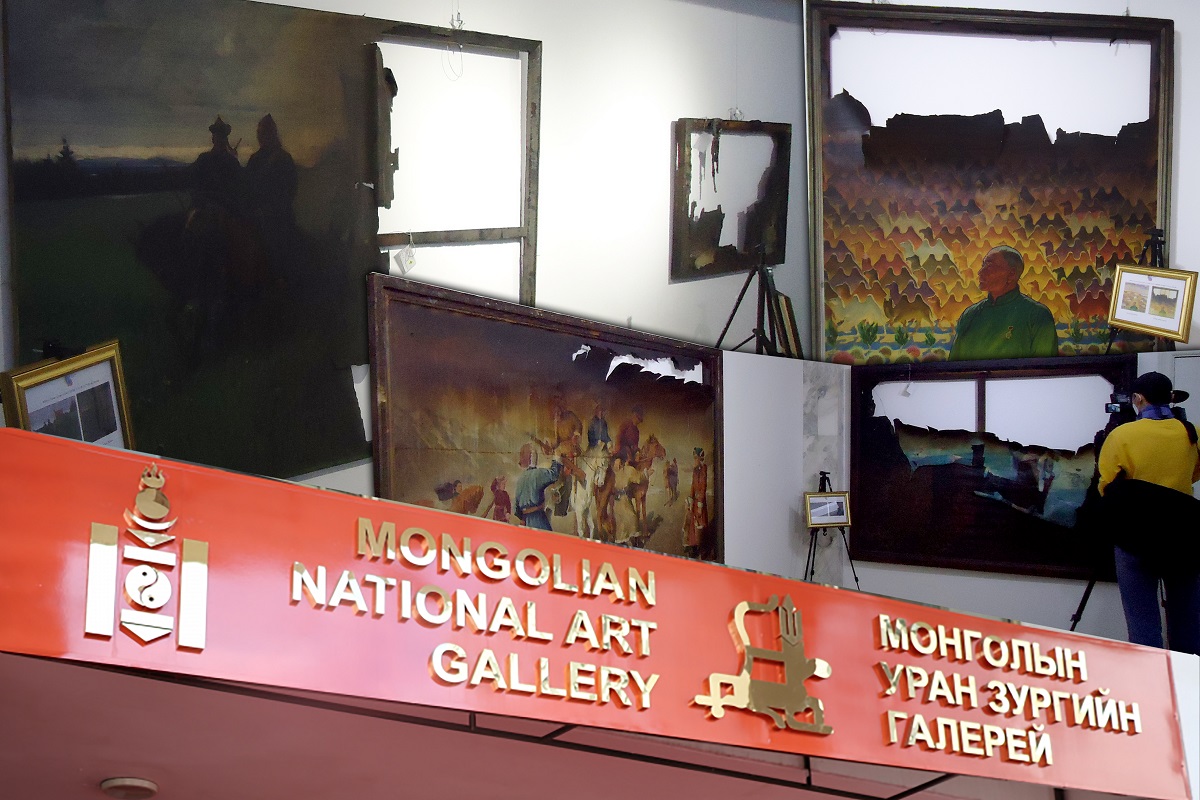 2008 оны долдугаар сарын 1-ний үймээн, 2009 онд гарсан галд 900-гаад бүтээл өртсөн. Хоёр удаа сэргээн засах хөтөлбөр явуулаад зогссон. Урлагийн бүтээл үрчлэх хөтөлбөр явуулж, долоон аж ахуй нэгж хамрагдаж хөрөнгө мөнгөө гарган бүтээлийг олон нийтэд хүргэж байгаа. Шатсан зургуудаар хаалттай үзэсгэлэн гаргаж Х.Баттулгыг Ерөнхийлөгч байхад хандсан ч анхаарч үзээгүй.