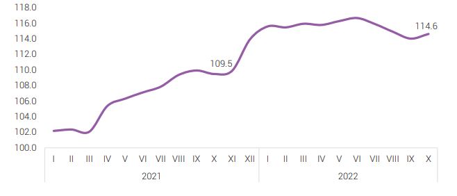 Есдүгээр сард улсын хэмжээнд 13.8 хувьтай гарч, наймдугаар сартай харьцуулахад эрчим нь буураад байсан инфляц аравдугаар сарын тооцооллоор улсын хэмжээнд 14.5 хувьд хүрч, эргэн өссөн үзүүлэлттэй байгаа юм.