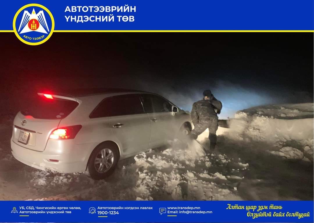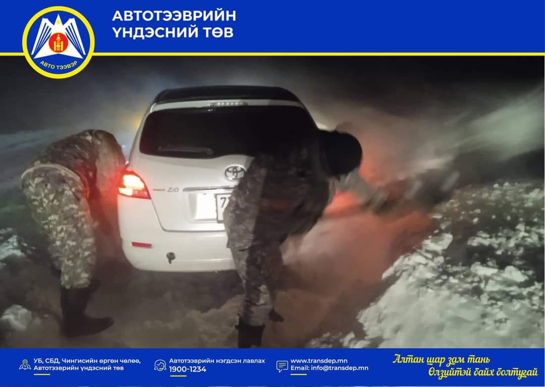 Тодруулбал, Хэнтий аймгийн төвөөс Бэрх тосгон хүртэлх автозамд их хэмжээний цас орсны улмаас халтиргаа гулгаа үүсэж, нэлээд олон тооны машин цасанд боогдоод байгаа ажээ. Тиймээс онцын шаардлагагүй бол энэ чиглэлд зорчихгүй байхыг аймгийн онцгой байдлын албанаас анхааруулж байна.