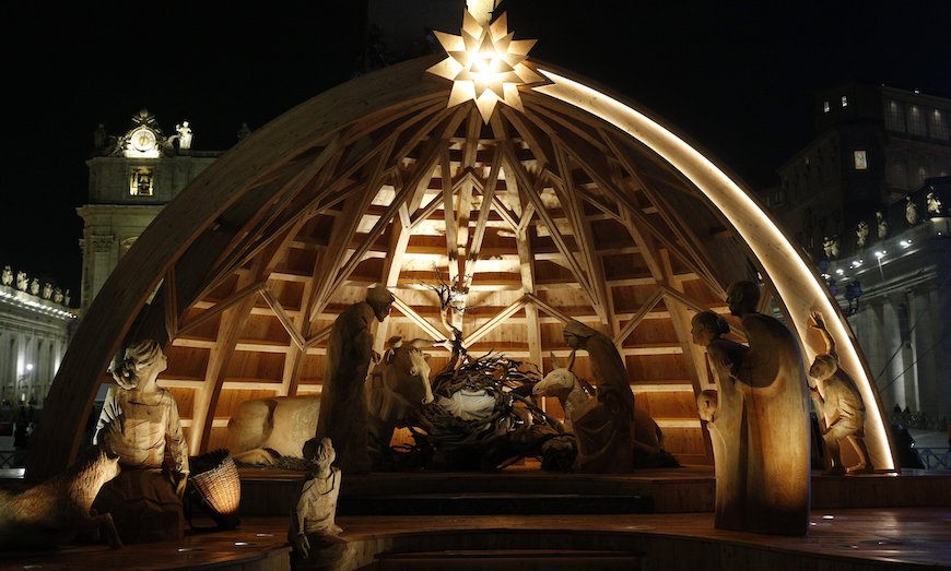 Зул сарын гацуурын салшгүй нэг хэсэг болох Исүс Христийн мэндэлж буй дүрсэлсэн тайзыг Италийн Фриули-Венециа Джулиа мужийн гар урчууд бүтээсэн байна. Энэхүү бүтээл нь 18 баримлаас бүтжээ. Бяцхан Исүсийн баримлыг уламжлал ёсоор Зул сарын битүүний шөнө байрлуулна. Нийт 16.8 тонн жинтэй тайз, гацуурын хамт 116 кв м талбайг эзэлж байгаа бөгөөд 50 цэгээс гэрэлтүүлж байгаа аж.