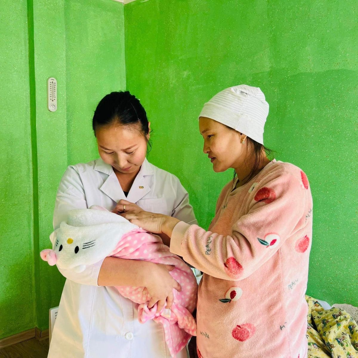 Эх, үр хоёрыг тус ангийн Эрүүл мэндийн төвийн их эмч ахмад Б.Гэрэлт-Од, бага эмч ахмад С.Нарангарав, сувилагч Б.Оюун-Эрдэнэ нар эх барин авсан байна. Хилчдийн хувьд сум орон нутаг, эрүүл мэндийн үйлчилгээнээс алслагдмал газар оронд үүрэг гүйцэтгэдэг. Овоотын отряд нь Өмнөговь аймгаас 300 км, Гурвантэс сумаас 45 км зайтай оршдог алслагдсан отрядын нэг юм. Өвлийн цагт, хээрийн нөхцөлд алтан гартай эмч нарын ачаар эх үр эсэн мэнд амаржлаа гэж Хил хамгаалах ерөнхий газраас мэдээллээ.