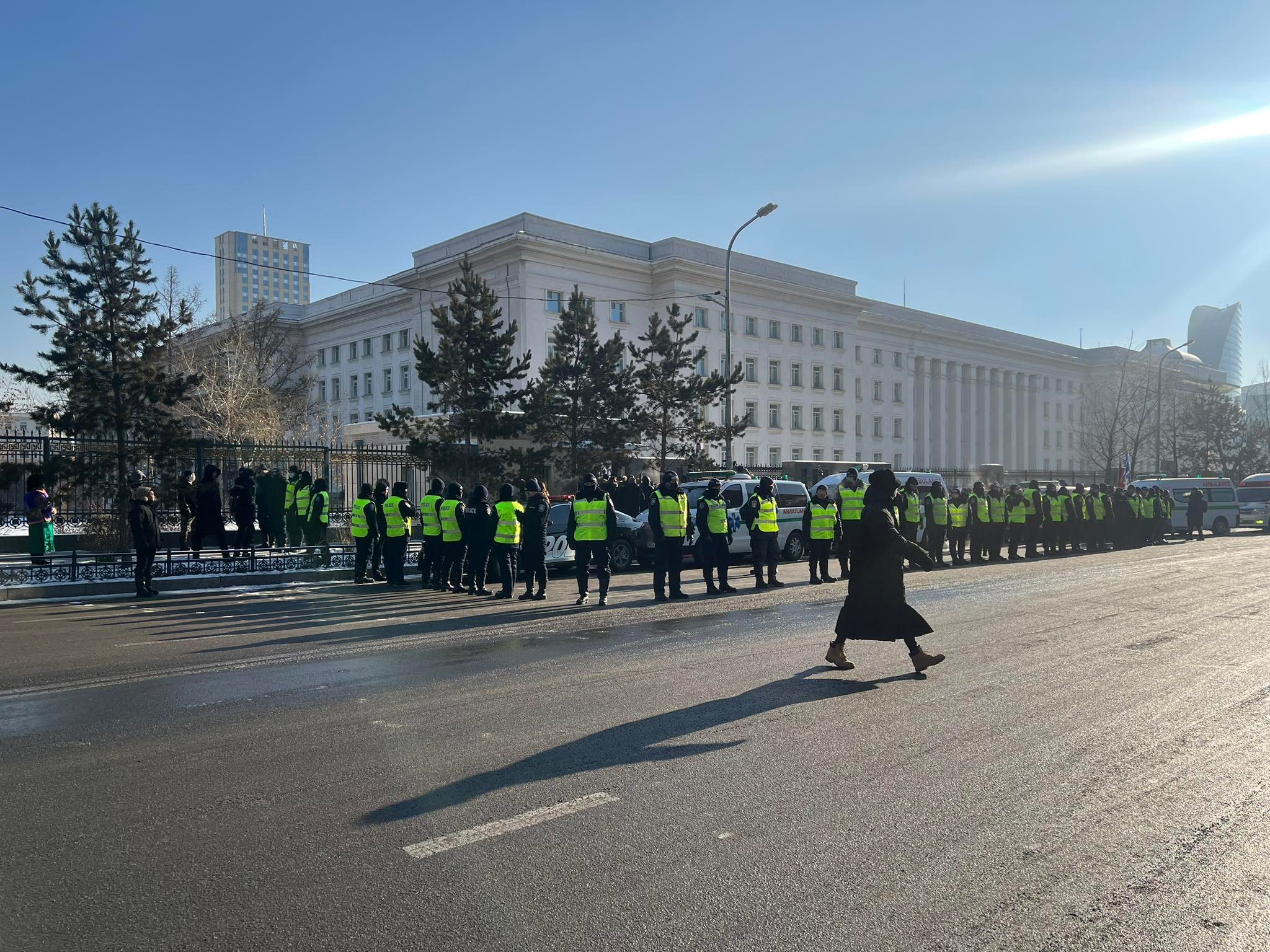 Хүйтний цаг агаарын нөхцөл байдалтай холбоотойгоор иргэдийн амь нас, эрүүл мэндийг хамгаалах, суулт зарласан иргэдийг Соёлын төв өргөөнд байрлуулан үг хэлэх, үзэл бодлоо илэрхийлэх, тайван замаар хуран цуглах эрхийг нь хангах зорилгоор Сүхбаатарын талбайг Цагдаагийн албаны тухай хуулийн 23 дугаар зүйлд заасны дагуу “гэмт хэрэг, зөрчлөөс урьдчилан сэргийлэх, учирч болох хор хохирлыг гаргуулахгүй, нэмэгдүүлэхгүй байх үүднээс шаардлага тавих” байдлаар чөлөөлсөн болно гэж Цагдаагийн ерөнхий газраас мэдээллээ.