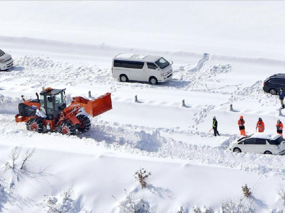 NHK телевизийн мэдээлснээр, энэ долоо хоногийн эхээр Японы хойд болон баруун хэсэгт их хэмжээний цас орсон байна. Үүний улмаас цахилгаан, харилцаа холбоо тасарч, төмөр замын хөдөлгөөнд саатал гарч, зам дээр 20-30 км урт түгжрэл үүсжээ.