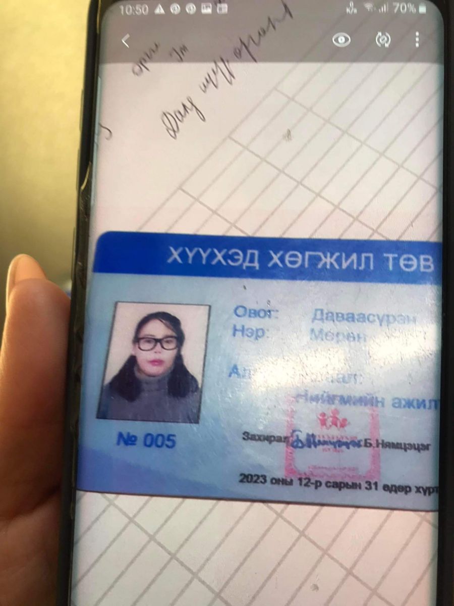 Тодруулбал, "Баянгол дүүргийн Хүүхэд хөгжлийн төвийн ажилтан Даваасүрэн овогтой Мөрөн, нийгмийн ажилтан гэсэн үнэмлэхтэй эмэгтэй хүн хөгжлийн бэрхшээлтэй иргэдийн гэрт түлээ түлш бэлтгэж өгнө" гэж Баянгол дүүргийн 22 дугаар хороонд байрлах аж ахуйн нэгж, хүнсний дэлгүүрүүдээс 30-100 000 төгрөгийн хандив тусламж хууль бусаар хурааж авжээ.