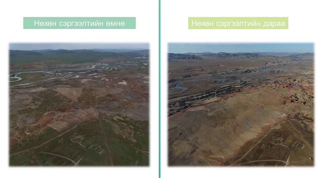 Эхний зураг дээр нөхөн сэрггээлтийн дараа гээд Орхоны хөндийн зураг тавьсан байна. Сайн ажигла 2 өөр хөндий.