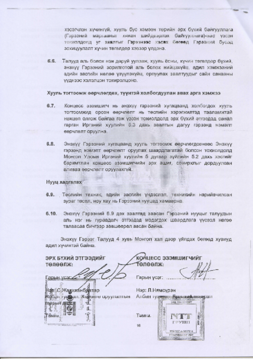 Тухайн үед концессын гэрээг эрх бүхий этгээдээс Хөрөнгө оруулалтын газрын дарга С.Жавхланбаатар болон Үндэсний хөгжлийн газрын дарга Б.Баярсайхан нар, концесс эзэмшигчийн талаас “Нэйшнл трейдинг энд транспорт групп” компанийн захирал Л.Нямсүрэн нар тус тус төлөөлж, гэрээ байгуулжээ. Уг төслийн санхүүжилт нь эхний ээлжинд 55 сая ам,доллар бөгөөд төслийн санхүүжилтийн эхний ээлжийн 12 сая ам.долларыг Монгол Улсын арилжааны аль нэг банкинд байршуулж, төслийн зориулалтын дагуу зарцуулах ёстой ч энэ мөнгөө ч байршуулаагүй алга болжээ. Гэтэл ийм ноцтой хэрэг өдүүлсэн компанид хариуцлага тооцох бүү хэл нэрийг нь ч дурдахгүй байгаагийн цаана юу байна гэдгийг тодруулах учиртай. Тэр тусмаа стратегийн гол нэрийн бүтээгдэхүүн нөөцлөх агуулах барихаар концесс авсан компани асуудалд хэрхэн хандсан, хэрхэн хаяж алга болсныг яагаад дурдахгүй байгаа юм. Өнөөгийн Засгийн газар, Цагдаагийн ерөнхий газар, Авлигатай тэмцэх газар, Тагнуулын ерөнхий газар болон бусад холбогдох байгууллагууд яагаад үүнд анхаарал хандуулахгүй байгаа юм.