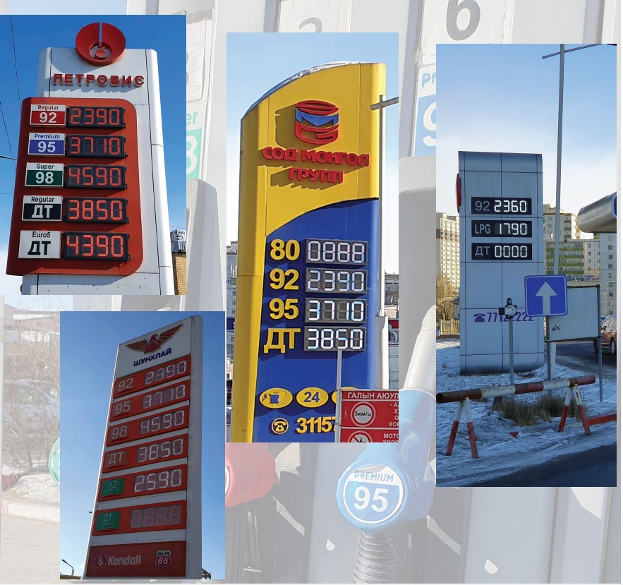 Шунхлай, Петровис, Сод Монгол, М-Ойл шатахуун түгээх станцад АИ-92 автобензин 2390 төгрөг, АИ-95 автобензин 3710, дизель түлш 3850 төгрөгийн үнэтэй байлаа. Харин Супер-92 шатахуун түгээх станцад АИ-92 автобензин 2360 төгрөг буюу 30 төгрөгөөр хямд байна.