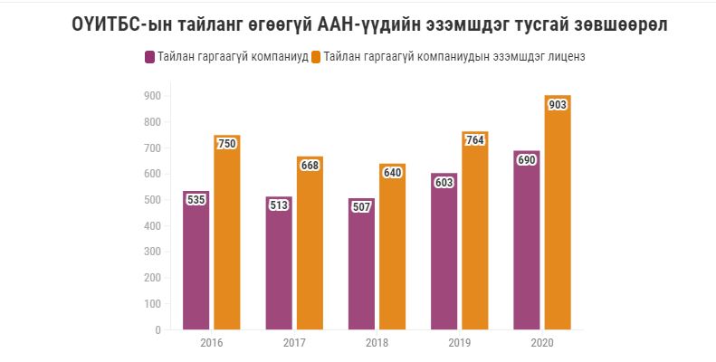Уул уурхай, газрын тосны салбарын тусгай зөвшөөрөл эзэмшигчдээс 2020 оны байдлаар 872 тусгай зөвшөөрөл эзэмшигч эцсийн өмчлөгчийн мэдээллээ ил тод болгосныг “Олборлох үйлдвэрлэлийн ил тод байдлын санаачилга”-аас мэдээлснийг өмнө нь хүргэж байв. Тус санаачилгаас өнгөрсөн онд өгсөн мэдээллээр Монгол Улсын уурхайн салбар дахь 1,636 тусгай зөвшөөрлийг эзэмшигч 1195 аж ахуйн нэгж сүүлийн 5 жилд ОҮИТБС-ын тайлан гаргаагүй байгаа юм.