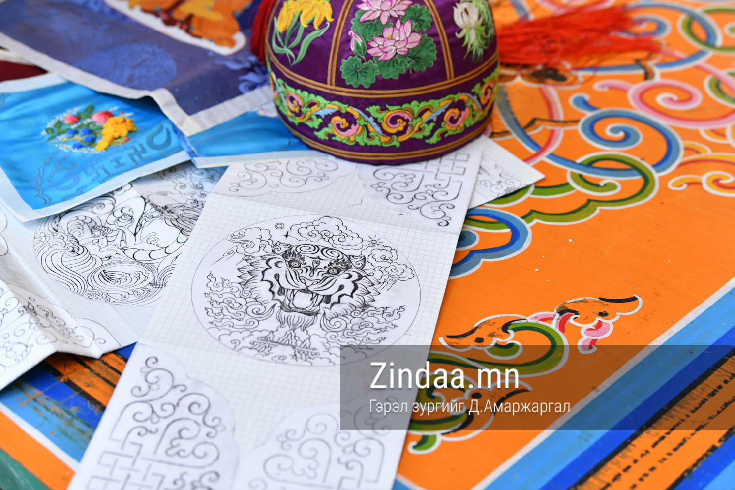 Бурхан, шүтээн урлахад хар зураг маш чухал байдаг. Тэгийн зургаа өөрөө гаргадаг. Торгон дээр тэг эргээд байдаг учраас хэцүү. Тухай бүрт нь зургаа засаж явдаг. Гаднын улс орнуудад задгай хатгамал түгээмэл байдаг. Зүү ороох оёдол бол манай уламжлалт өв соёлын нэг.