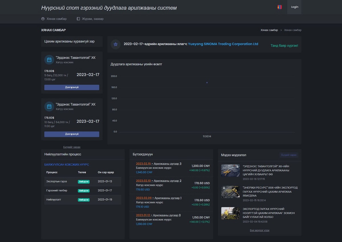 Засгийн газраас 2023 оны хоёрдугаар сараас эхлэн нүүрсийг биржээр дамжуулан хил үнээр экспортлохоор болсон. Энэ хүрээнд уул уурхайн бүтээгдэхүүний биржийн арилжааг “Монголын хөрөнгийн бирж” ХК-иар гүйцэтгүүлж байгаа юм.