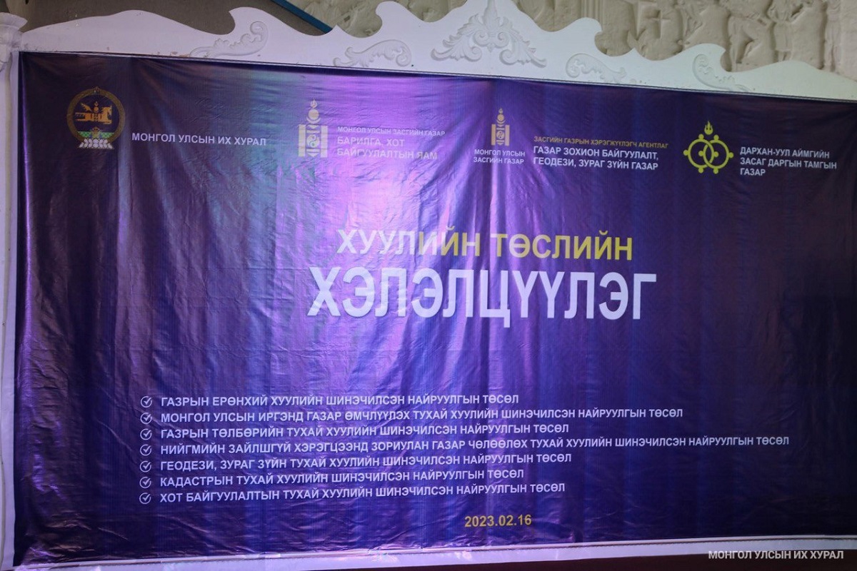 Монгол Улсын Засгийн газраас 2022 оны зургаадугаар сарын 17-ны өдөр Улсын Их Хуралд өргөн мэдүүлсэн Газрын багцхуулийн төсөл болон хамт өргөн мэдүүлсэн хуулийн төслүүд, 2022 оны 10 дугаарсарын 12-ны өдөр Улсын Их Хуралд өргөн мэдүүлсэн Геодези, зураг зүйн тухай хуулийн шинэчилсэн найруулгын төсөл болон хамт өргөн мэдүүлсэн төслүүд, 2022 оны нэгдүгээр сарын 22-ны өдөр Улсын Их Хуралд өргөн мэдүүлсэн Хот байгуулалтынтухай хуулийн шинэчилсэн найруулгын төсөл болон хамт өргөн мэдүүлсэн хуулийн төслүүдийг нээлттэй хэлэлцүүллээ.